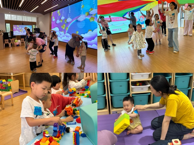 5月31日下午,杨浦校园内洋溢着节日的喜庆氛围。由学前教育学院承办的“伴日相约,幼见成长”宝宝玩中学游园活动,吸引了学龄前小萌娃的参与。孩子们在家长和学生志愿者的陪伴下,一起跳亲子操、玩游戏。这些游戏设计别出心裁,通过游艺环节不仅锻炼了身体,还开拓了视野,增长了知识。