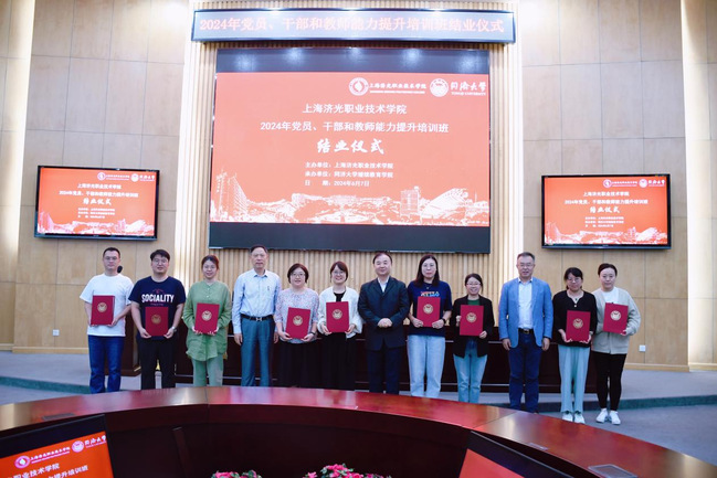 学习会结束后,2024年党员、干部和教师能力提升培训班结业仪式举行。与会领导老师和学员们共同通过视频回顾本次培训班的精彩集锦。同时,我校党委书记姜富明、上海市民办教育协会副会长、秘书长江彦桥以及同济大学继续教育学院院长金福安为学员代表颁发证书。希望全体教师能够将所学所感、所思所悟转化工作动力,为推动学校高质量发展凝心聚力。
