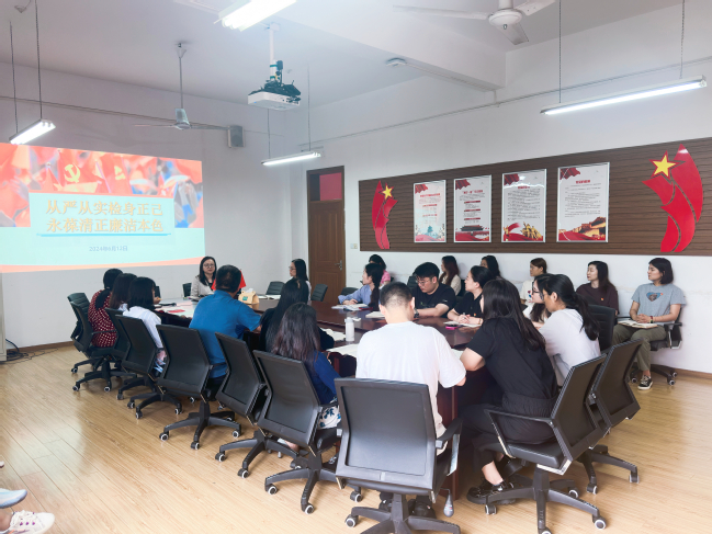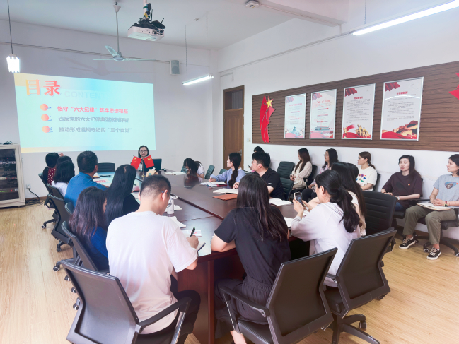 为扎实开展党纪学习教育,坚定不移推进作风建设,时刻守好纪律底线,6月12日,基础部与思政部直属党支部联合机关党总支第一党支部全体党员,在宝山校区大学生活动中心305会议室进行党纪学习教育集体学习。