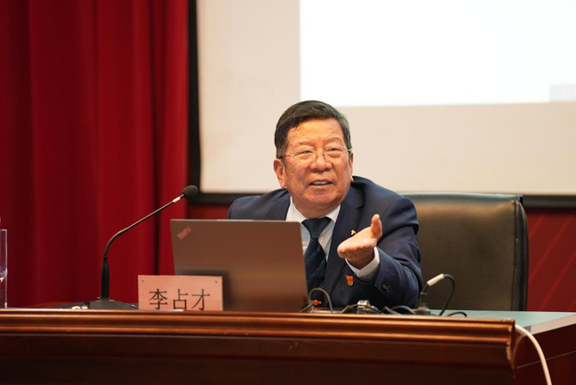 6月18日下午14:00,同济大学马克思主义学院教授、博导,全国高校思想政治理论课教师年度影响力人物、思政课名师、我校特聘教授及“李占才名师工作室”主持人李占才教授,受邀给我校2024届毕业生讲毕业最后一课《青春如朝日 努力放光彩》。本次课程在宝山校区报告厅举行,通过雨课堂平台同步直播,思政部全体教师与辅导员代表与会。