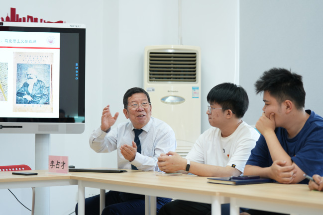 李占才教授紧紧围绕理想信念教育,结合自身经历,从作为一名普通党员、一名思政课教师等多个角度深入浅出地阐释了“我为什么信仰马克思主义”以及“在信仰马克思主义中的获得感”。李占才教授指出,作为一名中共党员,必须对马克思主义真的信仰,从内心深处对中国特色社会主义道路、理论、制度、文化高度自信。