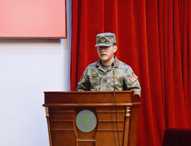 丰雄浩代表全体教官庄严表态:“在接下来的军训时光里,我和我的同事们将以高标准、严要求严格要求大家,让本次军训学员真正有所收获,实现自我突破和成长。”