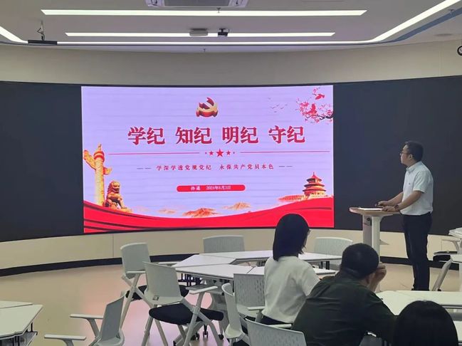为进一步深化对加强党的纪律建设和忽视党纪、违反党纪问题危害性的认识,推动广大党员及干部强化遵守纪律的自觉,教育引导广大党员学纪、知纪、明纪、守纪,深化对党纪的认识,进一步筑牢纪律防线,护理学院6月3日下午于实训楼九楼宣教室开展专题党纪学习教育,机关二支部、护理学院党员教师及发展对象共同参与此次学习。此次专题党纪学习特邀孙遥副校长讲授党纪学习教育专题党课,护理学院党总支书记潘美娟主持。