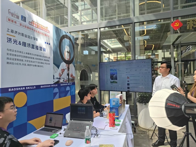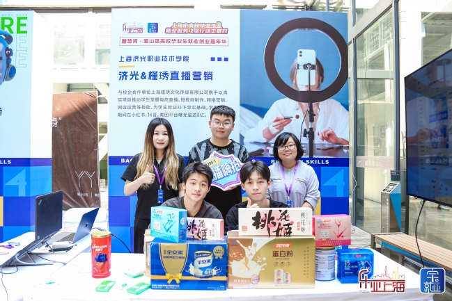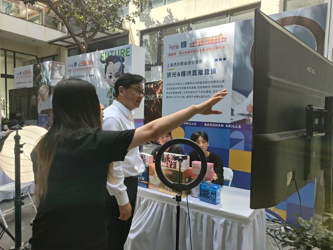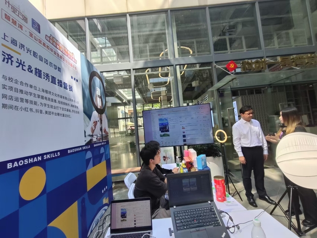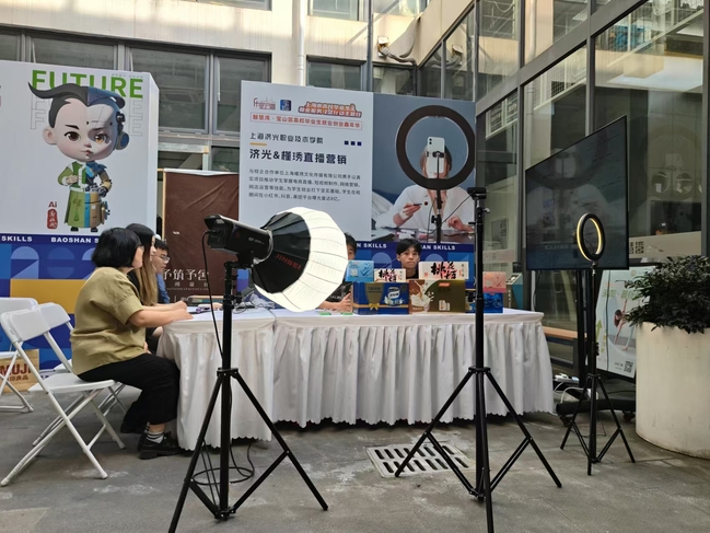 9月28日,上海市高校毕业生就业服务攻坚行动主题日暨“宝山区高校毕业生就业创业嘉年华”活动在智慧湾科创园举行。我校经济管理学院电子商务专业师生受邀参加活动,进行“互联网营销及直播带货”技能现场展示。