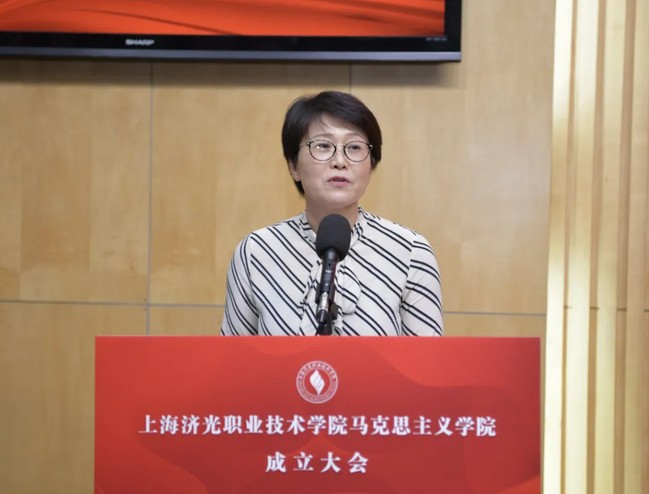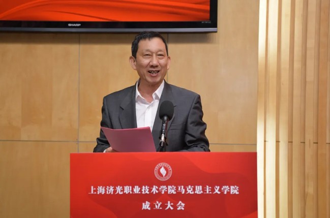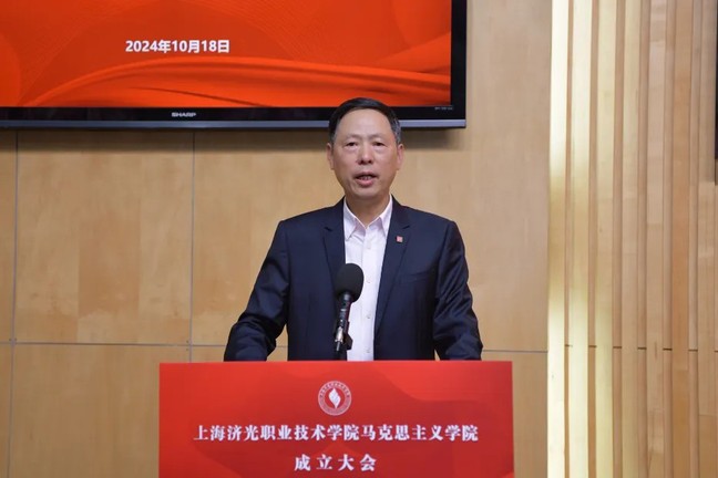 上海市教卫工作党委一级巡视员郑锦在讲话中指出,济光学院正式成立马克思主义学院,这是学校贯彻落实习近平总书记关于马克思主义学院和思政课建设要求的重要举措,是学校深入推进新时代铸魂育人工程的重要举措,也是学校加强内涵建设提升办学质量的重要举措。郑锦强调,济光学院马克思主义学院要进一步强化政治担当、坚持政治建院,紧紧围绕“培养什么人、怎样培养人、为谁培养人”这一根本问题,把握正确政治方向,把姓“马”姓“共”贯穿于办院兴学全过程,时刻向中央对标看齐,坚决做到“两个维护”;要牢牢把握用习近平新时代中国特色社会主义思想铸魂育人这个灵魂主线,切实上好“新思想”概论课,开好“新思想”专论课、个论课;要讲好思政必修课,开好思政选修课,建设思政课课程群;要研究和阐释马克思主义及其中国化最新成果,积极围绕社会热点和师生关心的理论问题,为师生解疑释惑;要进一步发挥好学校“李占才工作室”的示范带动作用,带领马克思主义学院教师为思政教育和繁荣哲学社会科学多做贡献;要严格按照标准配齐专职思政课教师,认真落实思政课教师专项津贴,保障思政课教师待遇;要强化思政课教师选用、管理、考核,严把政治关、师德关、业务关;要强化教师培训培养,开展教师国情教育、支持教师学历提升、选送教师挂职锻炼等,努力为教师成长搭平台、建舞台,不断增强教师职业认同感、归属感,真正实现“让有信仰的人讲信仰、让有情怀的人讲情怀”。