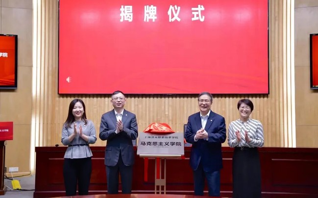 会上,我校党委书记姜富明宣读马克思主义学院成立和干部任命决定。同济大学党委书记方守恩、上海市教卫工作党委一级巡视员郑锦、中共宝山区委宣传部副部长周洁、董事长周家伦共同为马克思主义学院揭牌。