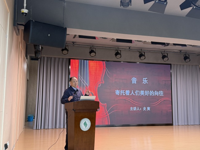 讲座以“音乐——寄托着人们美好生活的向往”为主题,围绕音乐是什么,音乐说什么,音乐与生活关系展开。史寅教授将音乐理论知识与优美的旋律相结合,使晦涩的理论知识变得生动形象,还通过现场演奏二胡,让同学们感受到音乐的魅力,助力实现学生们对美好生活的向往。