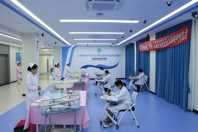 考试分为理论考试与操作技能考核两个部分。理论考试在图文信息中心通过机考的形式线上开展,考试过程中学生沉着应对,认真作答;操作技能考场设在上海市示范性虚拟仿真实训基地,考试内容包括“通草鲫鱼汤、新生儿沐浴、婴幼儿被动操”三个项目,学生们思路清晰,操作规范。充分展现了济光学子的良好精神风貌和扎实的专业素养。