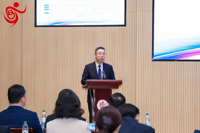 我校校长贺鹏飞发表致辞。贺校长指出,上海国际邮轮产业学院的成立,是对国家推动现代职业教育高质量发展战略部署的积极响应,学院的建设目标已纳入宝山区“三年行动计划”,充分体现了各级政府的高度重视与政策支持。贺校长进一步强调,本次标志设计大赛不仅是一次视觉形象的征集,更是对邮轮产业文化与产教融合理念的广泛传播,大赛的成功举办有效提升了学院的品牌影响力与社会认知度,为产业学院未来发展营造了良好的社会氛围。