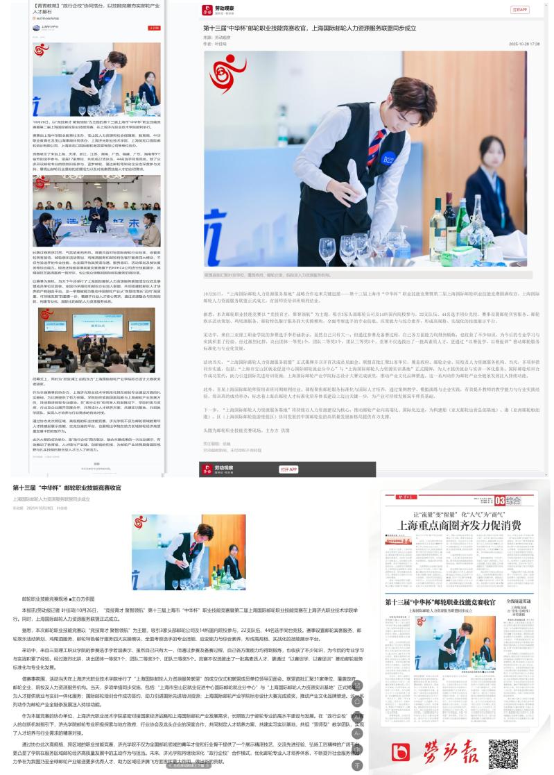 10月26日,以“竞技育才 聚智领航”为主题的第十三届上海市“中华杯”职业技能竞赛暨第二届上海国际邮轮职业技能竞赛在我校成功举行。 来自全国9个省市的17家单位、22支队伍的44名选手在这一平台上展技能、秀风采。赛事对标国际邮轮行业标准,设置邮轮宾客接待、邮轮娱乐活动策划、鸡尾酒服务和邮轮特色餐厅服务四大核心竞赛模块,全面考核选手的英语沟通能力、服务意识、专业操作技能等综合素质。10月27日,上海教育电视台、《劳动报》、学习强国上海学习平台、《劳动观察》客户端、对在我校举办的第十三届上海市“中华杯”职业技能竞赛暨第二届上海国际邮轮职业技能竞赛进行了专题报道。