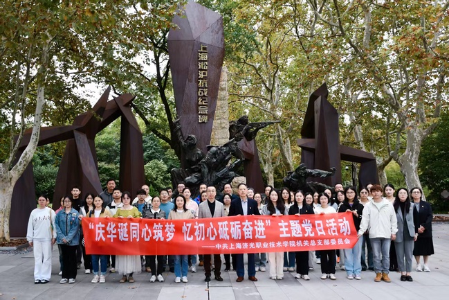为深刻缅怀革命先烈、传承弘扬抗战精神,引导党员干部厚植家国情怀、强化使命担当,10月31日下午,校党委书记姜富明、副校长王云飞带领机关党总支全体党员,以“庆华诞同心筑梦 忆初心砥砺奋进” 为主题,赴上海淞沪抗战纪念馆开展主题党日活动,在沉浸式学习中感悟历史重量、汲取奋进力量。
