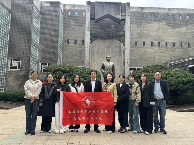 细雨蒙蒙之际,师生一行登上南京紫金山南麓的中山陵。这座始建于民国十五年的陵寝,是中国民主革命先行者孙中山先生的安息之地,130平方千米的园区内,陵园、廖仲恺何香凝墓等建筑错落分布,既是西方现代建筑思想与中国传统礼制的融合,更是革命理想与民族希望的象征。沿着392级台阶拾级而上,师生们在孙中山先生铜像前肃立,重温“天下为公”的革命理想与“三民主义”的救国主张。马院教师以“从革命先驱到新时代青年”为脉络,阐释“赓续民族魂”的时代接力——孙中山先生等革命先辈追求民族独立、人民幸福的理想,在马克思主义中国化的进程中被中国共产党继承与发展;今日新时代青年赓续民族魂,就是要将个人理想融入国家发展,在实现中华民族伟大复兴的征程中践行初心使命。