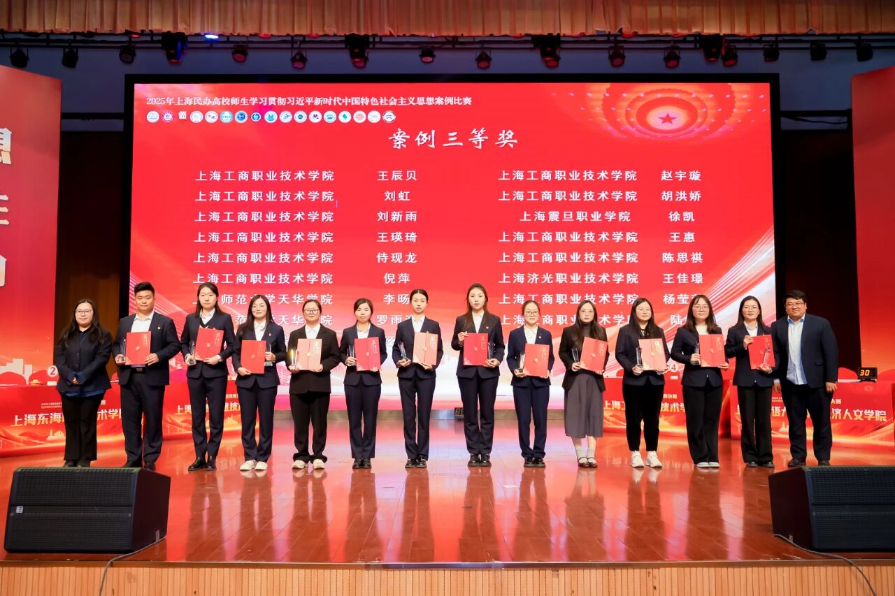 11月28日,2025年上海民办高校师生学习贯彻习近平新时代中国特色社会主义思想知识竞赛决赛暨表彰大会在上海工商职业技术学院嘉定校区召开,我校学前教育学院辅导员经韵、经济管理学院辅导员王佳璟的工作案例荣获三等奖。