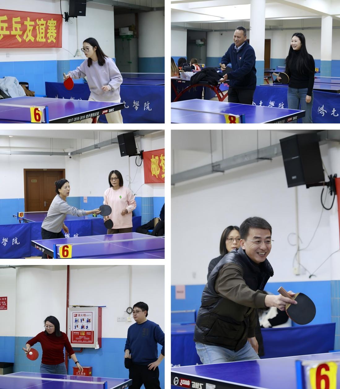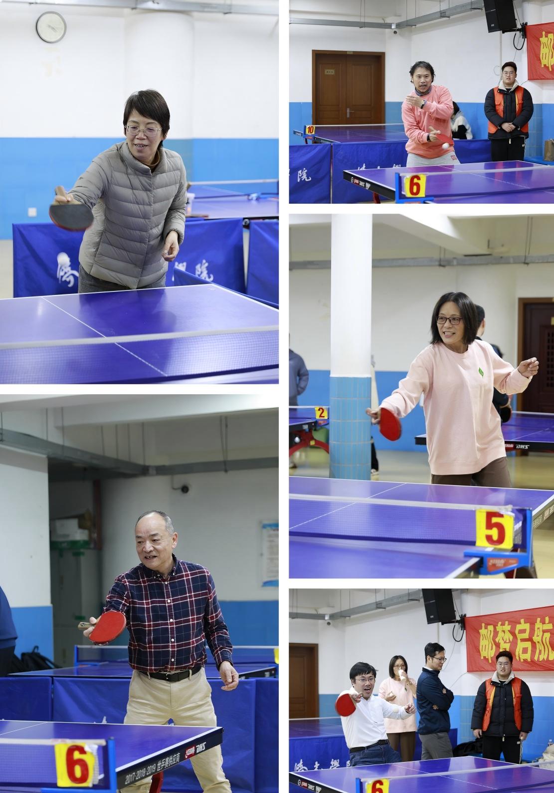 比赛现场银球飞梭,战况激烈。直拍攻势凌厉,横拍防守稳健;弧圈球旋转强烈,快攻扣杀气势如虹。选手们步伐敏捷,时而近台抢攻,时而远台周旋,多回合的精彩对拉引得观众喝彩连连。场上比分紧咬,悬念迭起,充分展现了拼搏进取的体育精神与企业员工、学校老师的昂扬风貌。