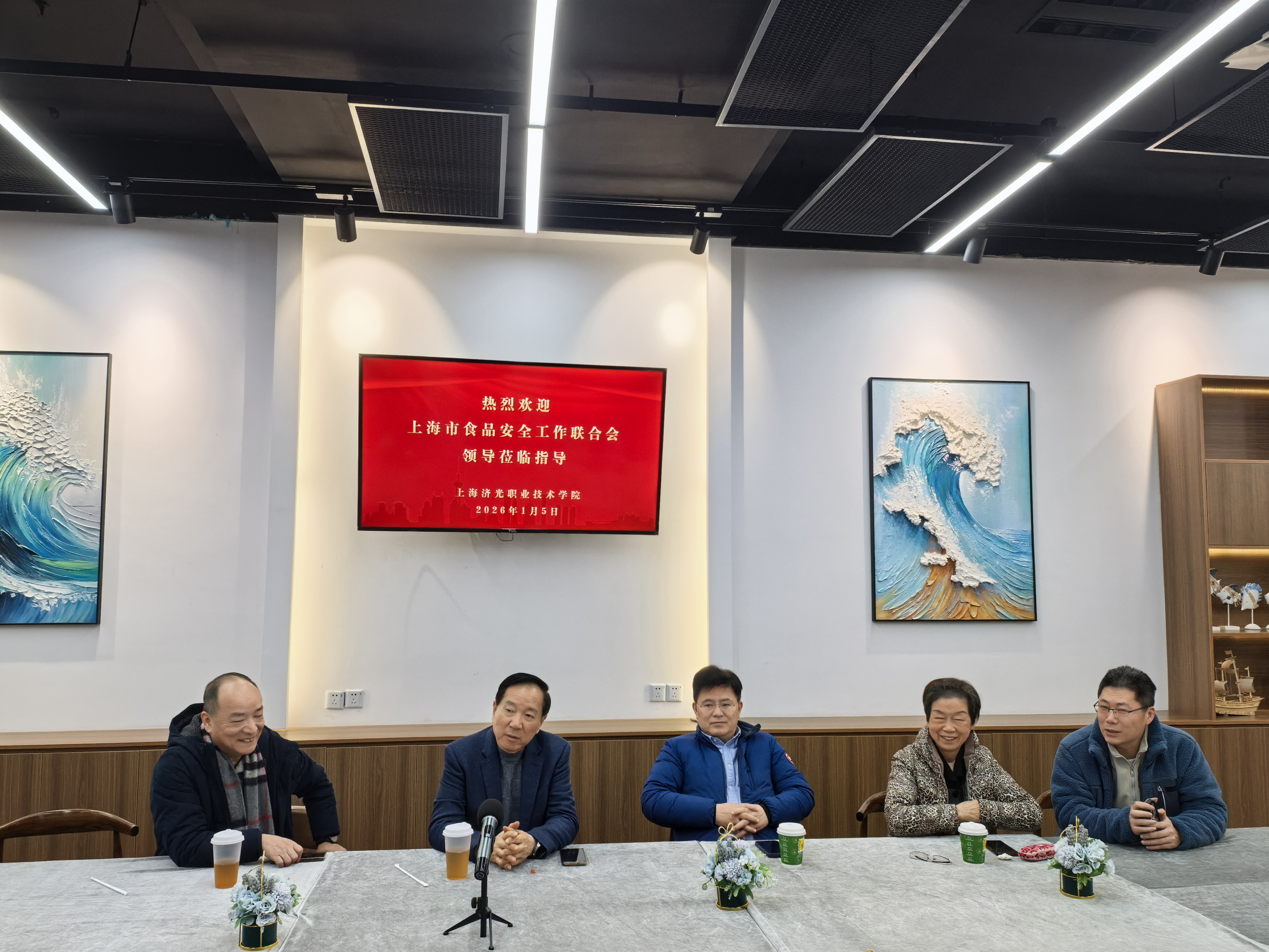 1月5日下午,上海市食品安全工作联合会会长陈祖尧、副会长兼秘书长罗永勤、专家姜培珍、上海吴淞口国际邮轮培训有限公司董事长钱继辉、校长谢中华一行莅临我校考察交流。我校孙遥副校长,经济管理学院院长张迺英、副院长林俊,继续教育学院贝佳毅副院长,信息中心主任助理应昊参与接待并座谈。双方围绕产教融合、校会合作等主题展开深入交流。