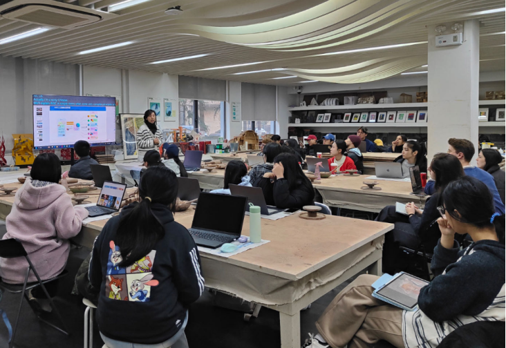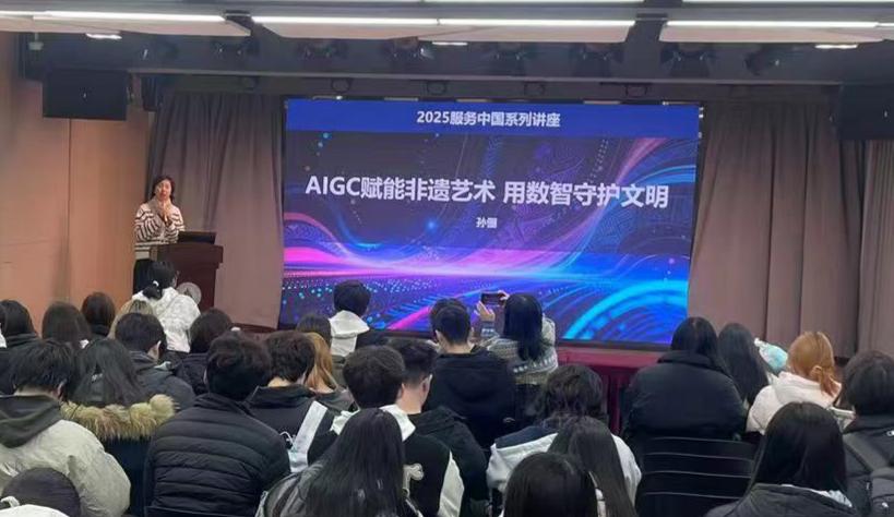 2025年12月31日,我校设计创意学院于杨浦校区举办“服务中国”系列专题讲座第十期。本次讲座由骨干教师孙俪老师主讲,她深度解析了人工智能生成内容技术为非物质文化遗产保护注入数智能量的路径,并现场发布了系列创新实践成果。