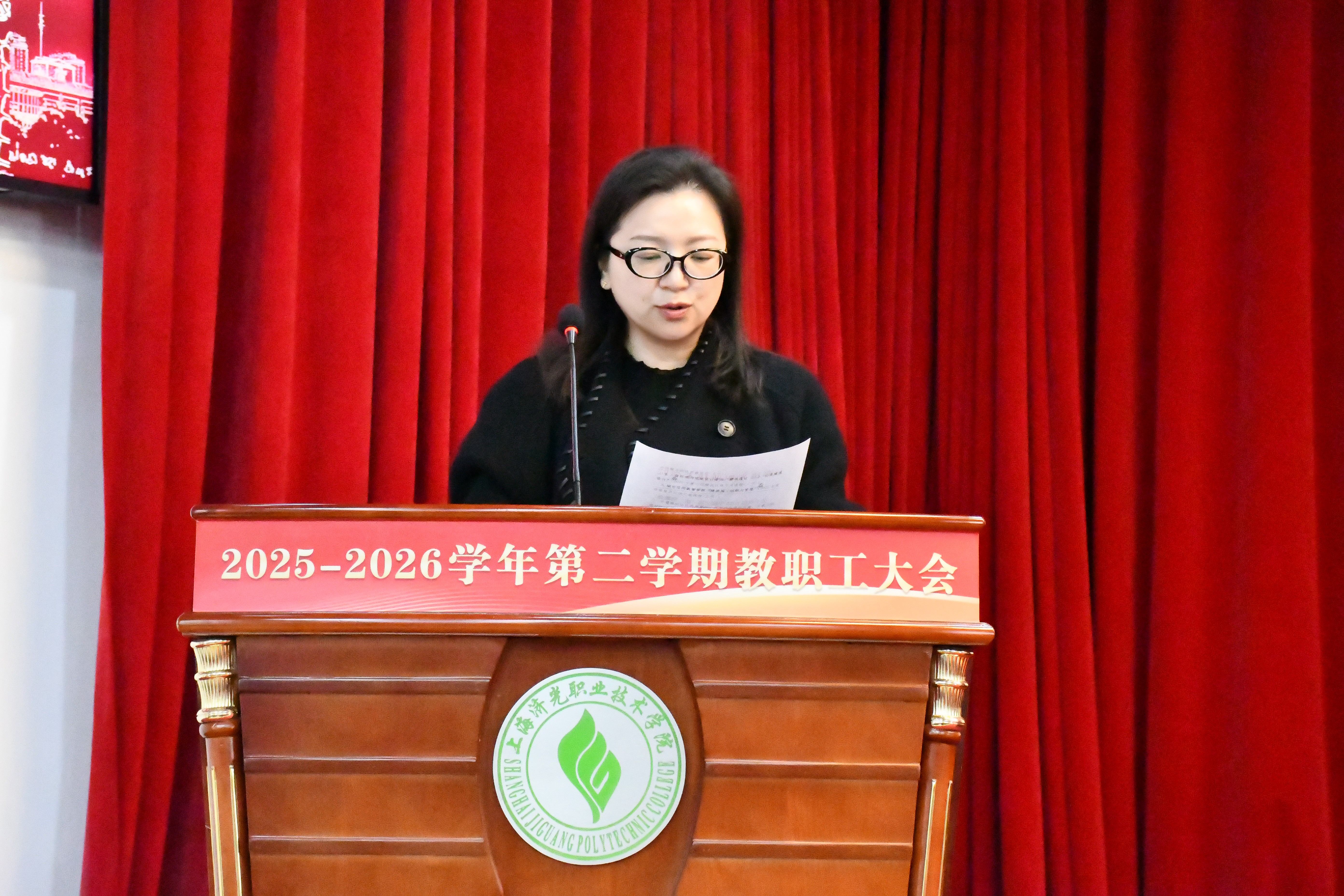 贺鹏飞校长作新学期工作部署。他指出,2026年既是学校“十五五”发展规划的开局之年,也是高等教育改革深化、产业技术迭代加速的关键一年。上海市教委印发的《深化人才培养模式全过程改革推动上海高等职业教育全面适配产业发展的工作方案》,明确了高水平职业院校的五项标准,为学校发展指明了新方向、提出了新要求。围绕“十五五”开局目标,结合国家和上海政策要求,新学期要集中力量抓好五项核心工作:一是要高度重视2028年高职院校办学能力评价工作,以评促建、促改,夯实办学内涵。此次评价是教育部部署、上海市教委组织的全国高职院校首次全面办学能力的“体检”,是教育强国建设在职业教育领域核心任务,也是学校提升质量、长远发展的核心契机,学校要成立专项机构,组织全校教职工学习文件,排查整改问题。二是深化职业教育教学关键要素改革,全面提升人才培养与产业需求适配性,围绕“专业、课程、教材、师资、实训”五大要素提升质量,重点抓好三项工作:建立专业红黄牌预警与动态调整机制,推进高水平专业群建设与资源共享,完善“招生-培养-就业”全链条闭环管理,强化部门协同,将就业质量、产业适配度作为人才培养核心检验标准,反向优化培养方案与课程设置,实现“以产定教、以岗定教”。三是加强师资队伍建设,完善“引、育、用、留”全链条机制,要围绕2028年评价要求打造契合职业教育需求、结构合理、素质过硬的教师队伍;四是深化校企合作,推动产教深度融合走深走实,校企合作是职业教育生命线,要从浅层次合作转向深度融合,落实教育部“校企共同招生、共同培养、共同就业、共同发展”四位一体模式,各二级学院结合专业特色,筛选产业契合度高、合作基础好的龙头企业深化合作,将企业真实项目、场景引入课堂,共同制定培养方案、开发课程教材、建设实训基地、带教学生,让学生在校园对接产业需求、毕业即可上岗。五是扎实做好招生就业、国际合作与社会培训工作,拓宽学生发展通道提升社会服务能力,全体教职工要凝心聚力做好宣传,保障生源质量与规模,要拓展国际合作新空间,响应“职教出海”战略,提升人才培养国际化水平,要深挖社会培训潜力,面向产业社会开发在职人员技能提升培训项目服务上海产业,面向在校学生开发行业认可职业技能与证书培训提升就业竞争力,学校将出台支持政策,推动各学院做实做强社会培训。