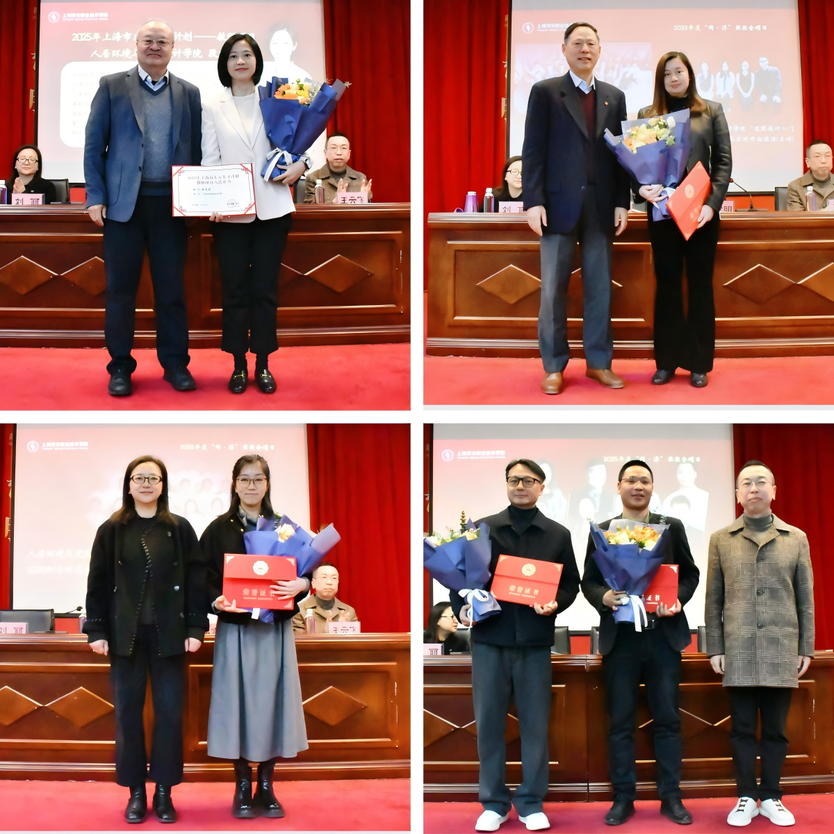 党委副书记刘丽宣读了表彰决定,对教育教学改革创新突出的个人及团队予以表彰。段文婷入选2025年上海市东方英才计划教师项目,人居环境与建筑设计学院“建筑设计专业群”入选市级新一轮第二批高水平高职专业群建设项目,人居环境与建筑设计学院“风景园林设计”入选2026年高本贯通培养试点项目,人居环境与建筑设计学院“建筑设计入门”课程、“建筑设计(二)-公共建筑设计”课程,城市空间数智学院“建筑施工组织与管理”课程入选2025年度市级精品在线开放课程(立项)。