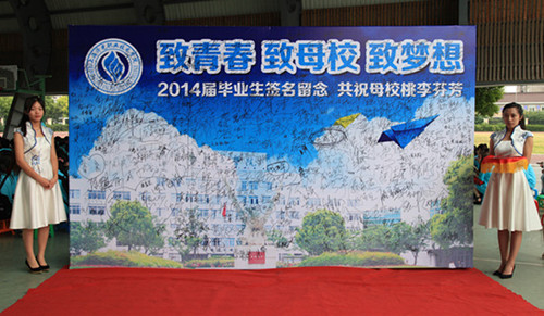 毕业典礼在《毕业歌》合唱声中落下帷幕。本次毕业典礼还特别设计了红毯签名墙,2014届毕业生们纷纷签名留念,以此来表达对母校培育之恩的感激之情,共祝母校桃李芬芳。
