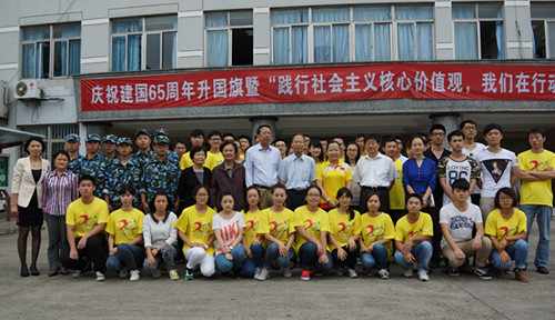 9月30日早晨7:30,庆祝建国65周年升国旗暨“践行社会主义核心价值观,我们在行动”宣誓仪式隆重举行。院长陈成澍、党委书记祁学银、副院长姚健敏、副院长潘立本、副书记王滟以及学生处、团委、思政部等相关部门负责人及各系的160名学生和优秀学生干部代表参加了本次活动。2000年夺得悉尼奥运会女子10米气手枪冠军、连续两年当选国际射击联合会最佳女射手、2003年当选国内十佳运动员的我国优秀射击运动员陶璐娜作为特邀嘉宾出席了升旗仪式。在全体师生的注目下,伴随着庄严的国歌,英姿飒爽的国旗护卫队将五星红旗冉冉升起,让在场的每一个人都激荡起对祖国无限的热爱和崇高的敬意。