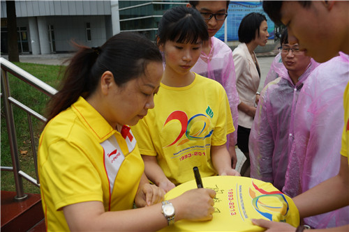 最后,建工系2012级学生代表刘晓豹代表我院学生站在鲜艳的五星红旗下,向济光学子发出“以实际行动自觉践行社会主义核心价值观”倡议并庄严承诺,用实际行动来自觉践行社会主义核心价值观,在时代大潮中成就自己的梦想,也为伟大中国梦的实现添砖加瓦。升国旗仪式结束后,济光学子热情围住了奥运冠军陶璐娜,进行了现场签名及合影。学生感言:能与奥运冠军这么近距离接触,非常激动。一定牢记在国旗下的誓言,用行动为社会主义核心价值观代言,决心努力学习,服务社会、报效祖国。