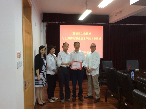10月10日下午,中国建筑学会原副会长,上海市建筑学会原会长,上海市政工程设计研究总院原院长吴之光教授莅临我院指导工作。吴之光教授受聘为我院名誉教授,我院陈成澍院长主持了聘任仪式,并与吴之光教授及建筑系领导亲切交谈,共同为学院的发展寻求思路。(图1,聘任仪式合影)