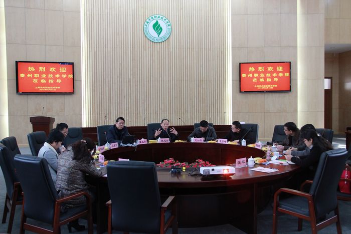 会上,陈成澍院长对泰州职业技术学院的到访表示欢迎,并介绍了我院近年来的发展状况,他提议双方在建筑工程专业方面加强合作交流,互惠共赢;潘立本副院长就建筑工程专业顶层设计情况做了详细介绍;建工系主任应惠清介绍了专业改革和申报上海“一流专业”的思路以及信息化平台开发情况;机电系副主任傅立群作了学院教育部信息化项目、微课程开发思路和课程信息化开发案例的交流。