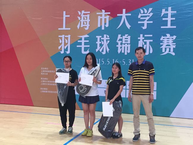 5月中下旬,上海市大学生羽毛球锦标赛在同济大学举行,孟凡涛、王琛老师带队,由王福贵、林妤铭、顾�祺等16位同学组成的羽毛球代表队,经过运动员的努力拼搏,获得女子团体第二名、男子团体第七名,王福贵获得女子单打第三名,林妤铭、吴俊德获女子双打第三名,顾�祺、王倩获混双第四名,周豪威、张朋获男子双打第六名,王海燕、倪正嘉获女子双打第六名。