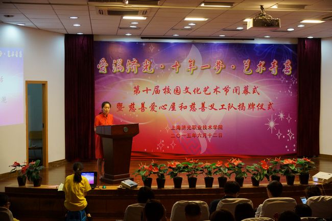 6月12日下午,“爱满济光•十年一梦•艺术青春”上海济光职业技术学院第十届校园文化艺术节闭幕式暨慈善爱心屋和慈善义工队揭牌仪式在我院报告厅隆重举行。出席本次活动的领导有上海市慈善基金会副秘书长刘淑英、上海市慈善基金会副秘书长祁申、上海市慈善基金会宝山分会常务副秘书长袁建民、我院党委书记祁学银,党委副书记王滟以及各二级学院、系、职能部门负责人、全体辅导员。本次活动还特别邀请了兄弟院校慈善义工队负责人、我校慈善义工志愿服务共建单位杨泰实验学校、天馨学校、民办杨行小学、民办杨东小学、东方社区信息苑、勤丰佳乐敬老院及怡康敬老院的领导及嘉宾。