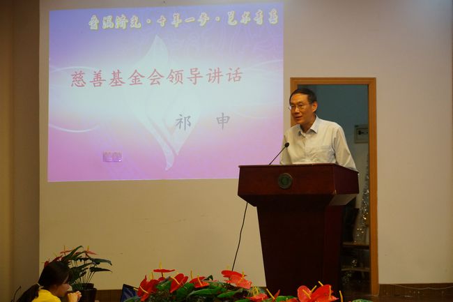 之后,上海市慈善基金会副秘书长祁申代表上海市慈善基金会做了重要讲话。充分肯定了我校慈善义工在安老、扶幼、助学、济困各项工作中取得的成绩。希望我校慈善志愿者再接再厉,引领学校帮困助学、志愿服务工作迈上一个崭新的台阶。