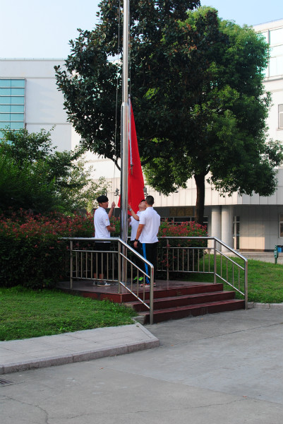 9月21日早7时,各院系师生代表于教学楼前举行首次新学期升国旗仪式。
