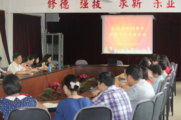 9月30日下午,我院召开“迎国庆66周年”教职工代表座谈会,各系部党支部书记、思政部教师代表共同参加座谈会。会议由党委书记祁学银主持。