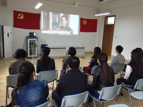 会上,两个支部党员与经管系分团委成员共同观看了十八届五中全会相关报道的视频资料并进行广泛而热烈的发言交流,随后党员们向经管系分团委的学生代表们赠送书籍。