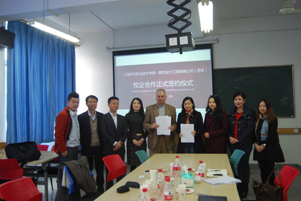 11 月25 日,我院建筑系与德恺建筑设计工程有限公司(德资)校企合作签约仪式在建筑系正式举行。德恺(中国)董事长克劳斯•特莱普特先生、董事姜嵩先生等与我院建筑系主任岳华、副系主任黄琪、绿色建筑专业负责人李书谊、绿建团队成员周婧等几位老师出席了签约仪式。