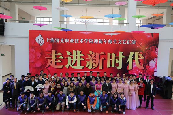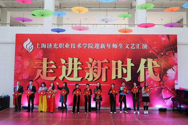 建工系激情澎湃的武术表演《开门红》拉开了文艺汇演的序幕,8个英姿飒爽的小伙伴着鼓点挥舞着旗帜,为舞台上下营造出热情、激昂的氛围。随后,精心准备的汇演节目逐个闪亮登场,气氛热烈,高潮迭起。基础部和思政部的朗诵《为全面建成小康社会喝彩》以及机关的朗诵《奔梦济光》语气豪迈,真挚热烈;机电系歌曲联唱《祖国山河一片红》和团委的歌曲联唱《各族人民一家亲》你方唱罢我登场,将全场观众拉到了激情四射的年代;学生演绎的相声《大学梦想》和小品《以貌取人》则以风趣幽默的语言针砭时弊,为大家上了宝贵的道德课;护理学院的手语舞蹈《阳光总在风雨后》和建筑系的乐器书法表演《走进新时代》清新高雅,令人动容;还有舞蹈串烧和跆拳道的声声呐喊,漓淋尽致展现了济光学子律动朝气和飞扬青春的一面。由工会的老师们献上的时装秀《绽放吧,老师!》获得了满场喝彩,将汇演推上高潮。最后文艺汇演在学院领导师生和演职人员的大合照中成功落下帷幕。