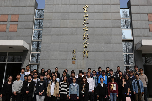 为教育青年学子铭记先烈的不朽功勋,继承先烈的革命遗志,坚定不移的为实现中华民族伟大复兴的中国梦努力奋斗,4月1日,由校团委主办的以“继承优良传统,弘扬爱国精神”为主题的清明祭扫活动在宝山烈士陵园举行,参加此次活动的有校团委学生会、易班工作站、悦书明礼社及各系学生 代表48人。