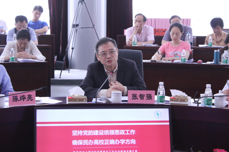 党委书记祁学银代表学校对督查组专家的到来表示欢迎,随后他以《坚持党的建设统领思政工作、确保民办高校正确办学方向》为题,从主要做法、特色工作和努力方向等方面进行了全面汇报。