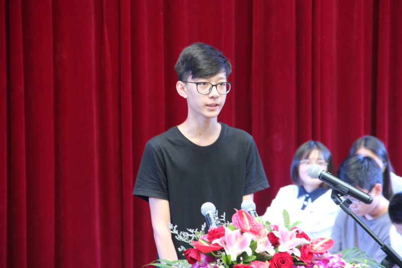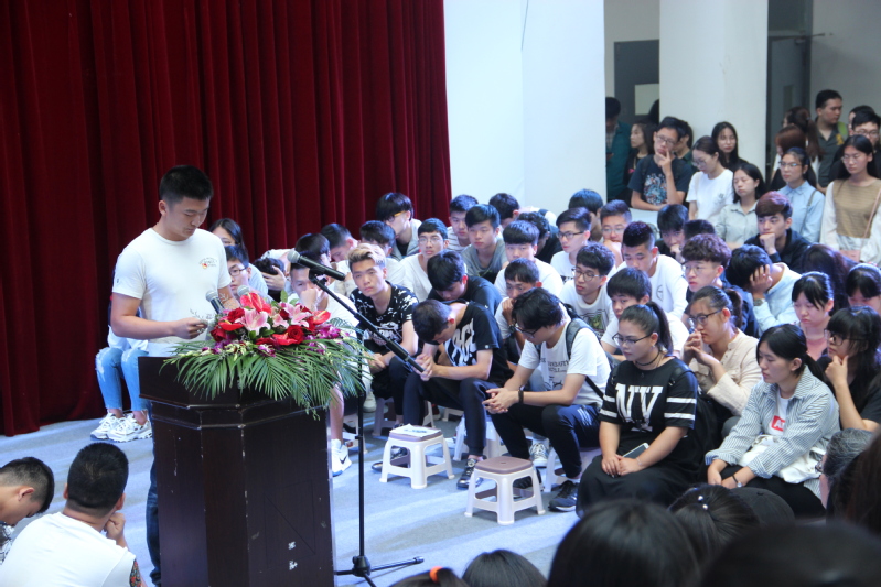 老生代表万俊逸对学弟学妹分享了大学感悟:大学生活是人生的重要的转折点,是一种特有的校园文化,会使大家从幼稚走向成熟,从幻想走向理想。新生代表赵海烨则在发言中立下三年后青春无悔的誓言。