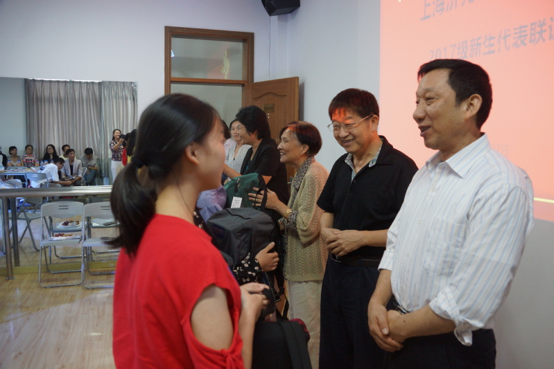 祁学银书记在给新生的祝词中,首先代表学院领导对新生的到来表示欢迎与祝贺,他希望新生入校后能够清晰的认识自己,为自己三年的学习、生活做好规划,并在上海这座充满活力与生机的城市中,坚定目标,成就自己。
