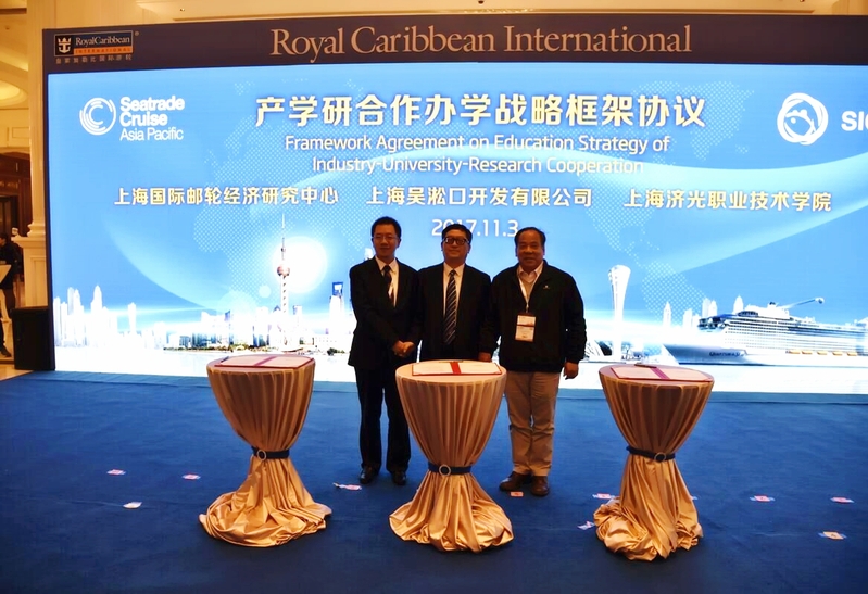 我院目前已向教育部提交新办“国际邮轮乘务与管理”专业申请,并以此次《产学研合作办学战略合作协议》签订为契机,主动融入邮轮经济的发展,不断提升我校人才培养和服务社会水平,为宝山区域经济、社会发展助力。