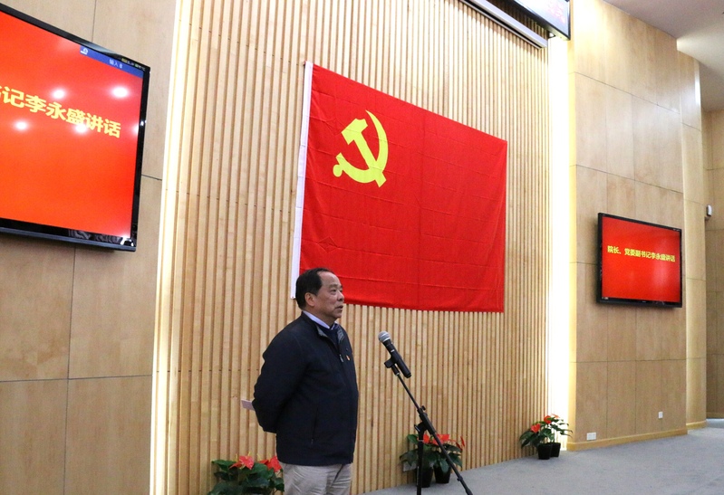 学院院长、党委副书记李永盛作了重要讲话。李永盛院长指出,党的十九大报告主题中提出要“不忘初心,牢记使命。”他希望我院全体党员要在新一届的党中央领导下,能够树立信心,不忘初心,勇于担当,承担起各方面的责任,能够在教职工中起到表率作用,吃苦在前,为我们的教育事业贡献力量,以胸前的党徽、面前的党旗时刻警醒自己忠诚党、敬畏党、拥护党,牢记自己的党员身份,做一名合格的共产党员。