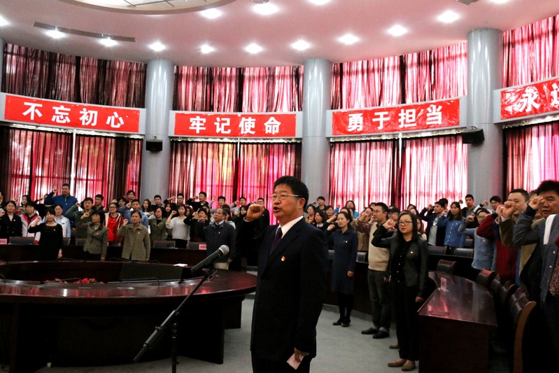 11月9日中午,我院党委组织学院全体党员在学生活动中心圆形会议室举行“佩戴党徽亮身份 重温誓词学党章”宣誓仪式,本次仪式是学院学习宣传贯彻党的十九大精神系列工作的重要内容。