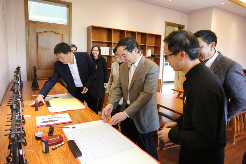 近日,上海市教卫党委副书记、市教委副主任高德毅,上海市民办高校党工委书记王瑞杰等领导在我院党委书记祁学银、副院长胡展飞的陪同下走进了位于我院学生活动中心203室的我院中华优秀传统文化教育体验中心。