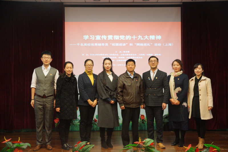12月12日上午,由教育部主办的“学习宣传贯彻党的十九大精神——千名高校优秀辅导员‘校园巡讲’和‘网络巡礼’活动(上海)”在学院报告厅举行。党委书记祁学银、党委副书记王滟、院长助理姚桂芳、各院系助理、全体专兼职辅导员、思政部教师、学工部全体人员及学生代表200余人出席报告会,会议由学工部部长王琛主持。