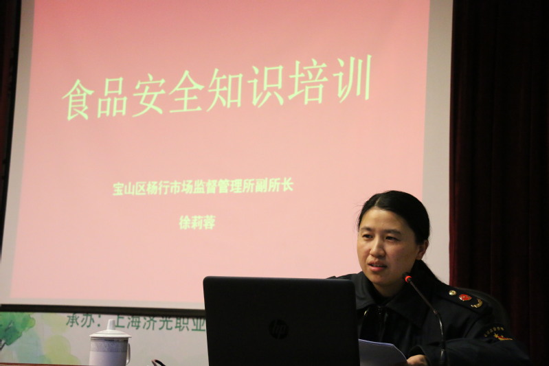 为了加强学生和食堂工作人员对食品安全知识的了解,提高大家的食品安全意识和自我防范能力,培养学生合理健康饮食习惯, 12月19日,宝山区杨行市场监督管理局所副所长徐莉蓉为我校师生员工进行了食品安全讲座。