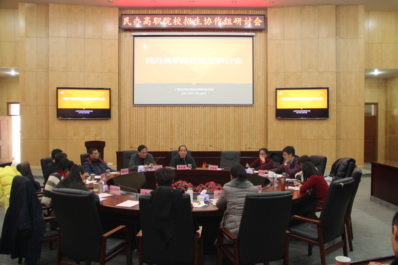 12月20日下午,市民办高职院校招生协作组研讨会在我院召开。市教委学生处丁良副处长、民办教育处卓保彤老师以及本市11所民办高职院校招办主任参加了本次会议。会议由我院招办主任孙遥主持。