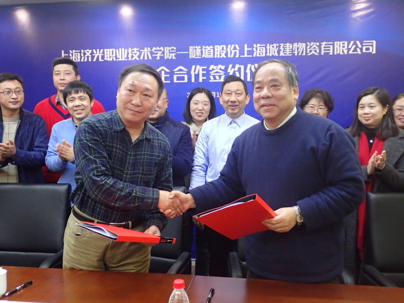 为紧跟行业发展新趋势,大力推进与行业核心企业的深度合作,1月18日,我院与隧道股份上海城建物资有限公司举行了隆重的校企合作签约仪式。我院院长李永盛、副院长胡展飞、院长助理陈幼德、岳华,以及建工系主任柴瑞、瞿丹英等,以及城建物资公司的总经理糜强、总工程师徐亚玲、业务经理朱永明、工程建设行业协会顾兆春、项目经理胡青莲等共同参加签约仪式。仪式由城建物资公司的总工程师徐亚玲主持。