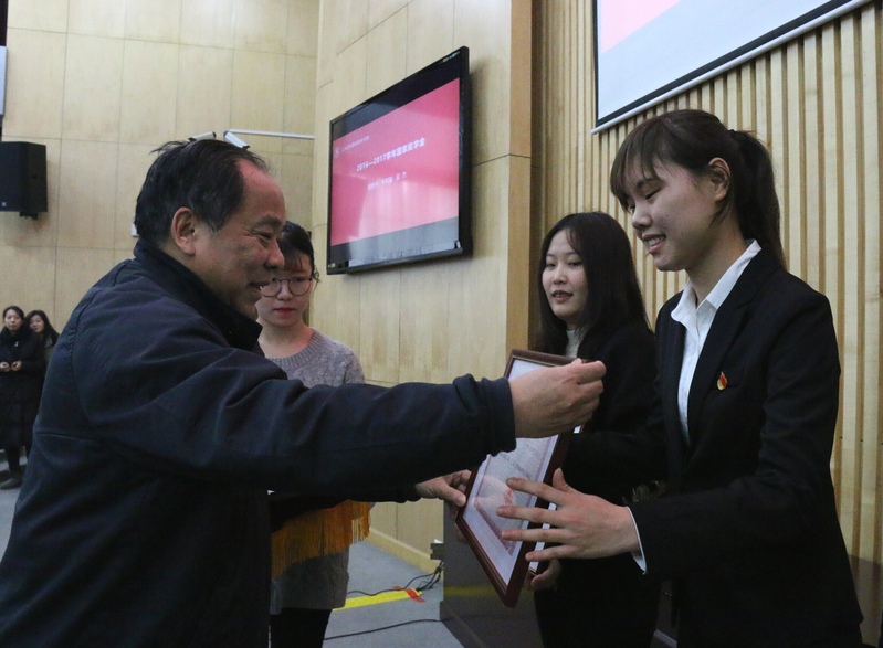 会上,由副院长姚健敏宣读了2016——2017学年获得国家、上海市以及学院奖学金等奖项的学生名单,并为获奖单位和个人颁奖。本次国家奖学金获得者、经管系卞可苗同学代表获奖同学做了“牢记时代使命,书写人生华章”交流发言。