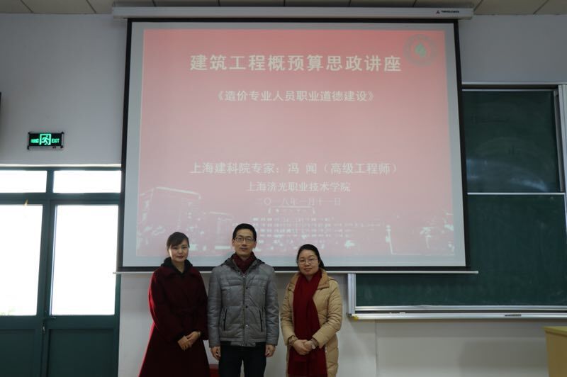 来自上海市建筑科学研究院造价工程公司的副总工程师通过“造价形势背景”、“造价专业前景”、“造价专业知识储备”、“争议调解”等七个方面,以具体项目案例的讲解带领学生感触造价职业道德建设,感知社会现实。