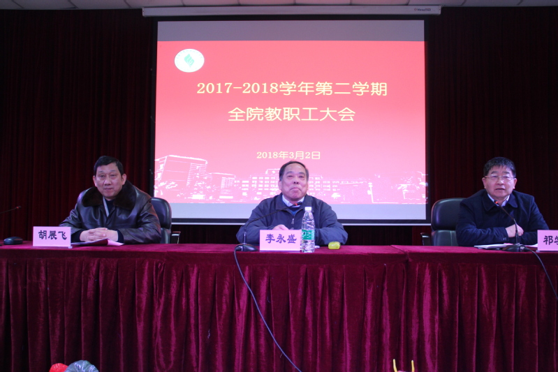 为明确新学期学院主要工作任务和发展目标,聚焦教育教学中心工作,3月2日,我院召开2017-2018年第二学期全院教职工大会,全院教职工及全体兼职教师共三百余人参加会议。会议由党委书记祁学银主持。